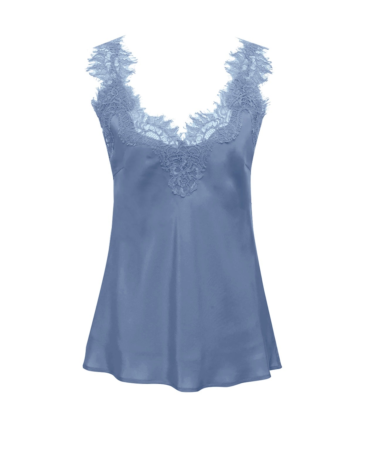 The Harper Strap Bias Camie in Ash Blue offers pre-washed silk for a luxurious feel and our signature hand trimmed Coco Lace for a touch of elegance. The cut on bias design provides a flattering silhouette, while the absence of lace at the hem allows for an effortless tuck. Expertly crafted for a perfect fit.