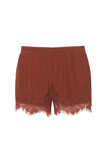 Comfortable silk shorts with elastic waistband and handy pockets. Elevated with Gold Hawk's signature Coco Lace for a luxurious touch.