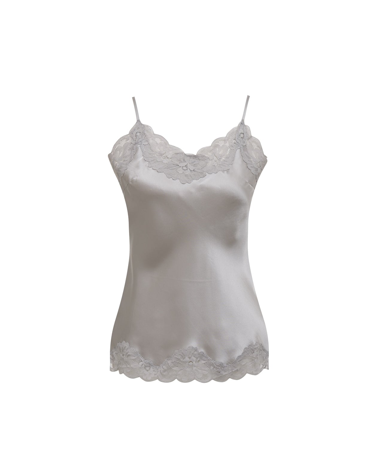 Floral Lace Silk Cami - Ice Grey