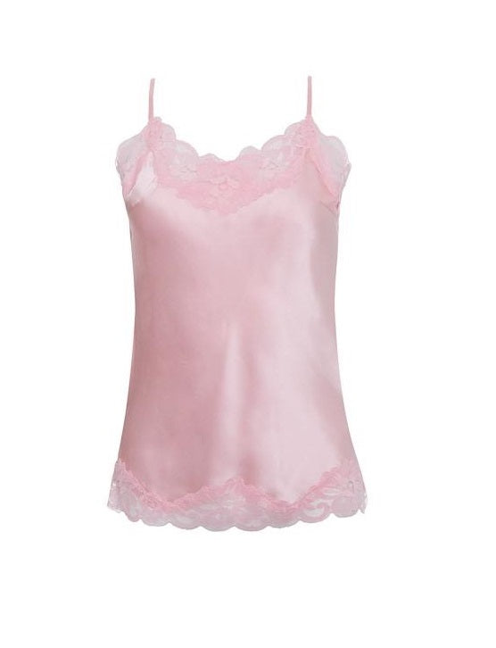 Wear it season after season, on its own, or layered. The floral patterned lace trim gives this silk