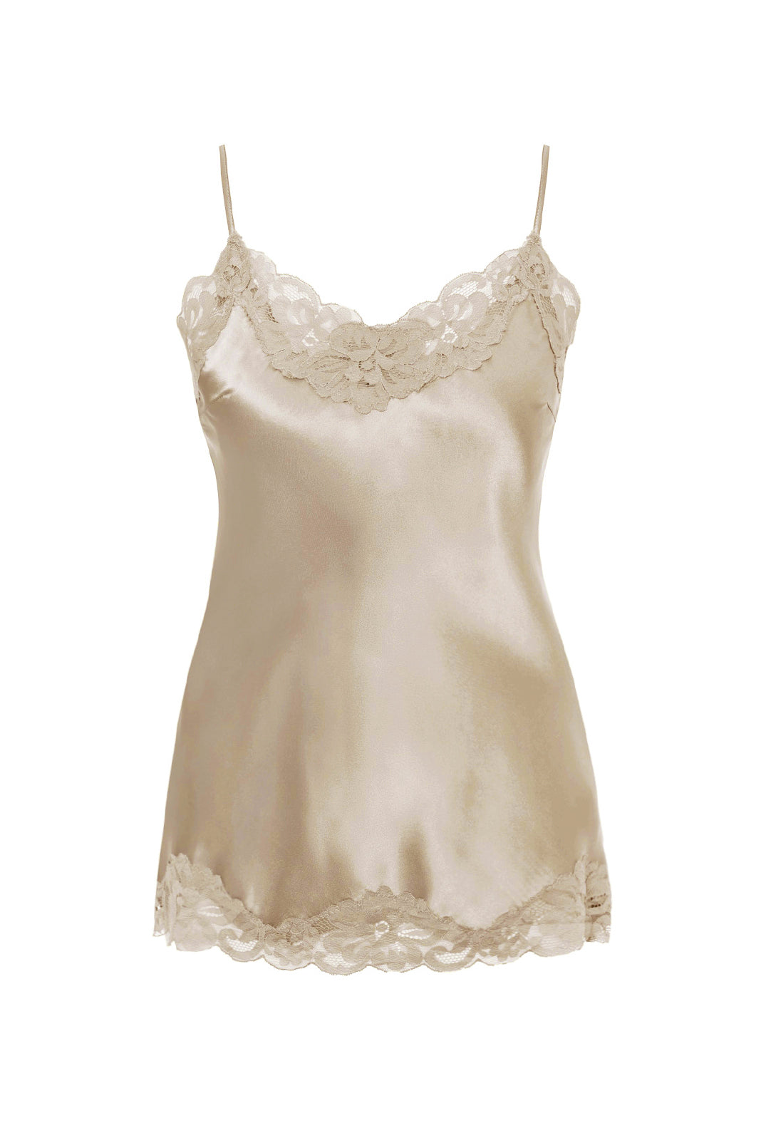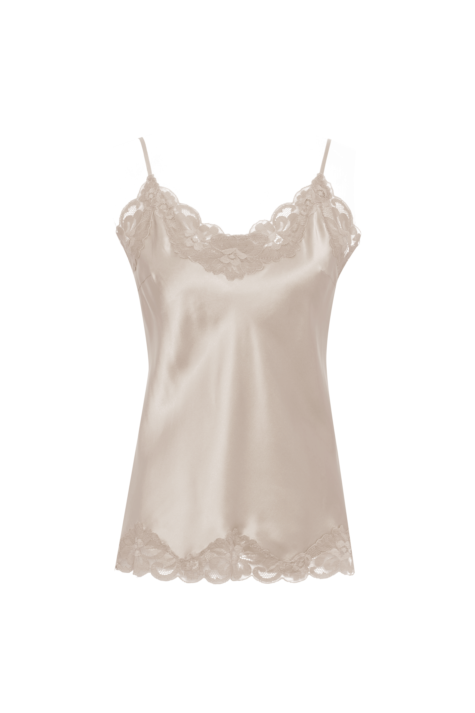 Wear it season after season, on its own, or layered. The floral patterned lace trim gives this silk