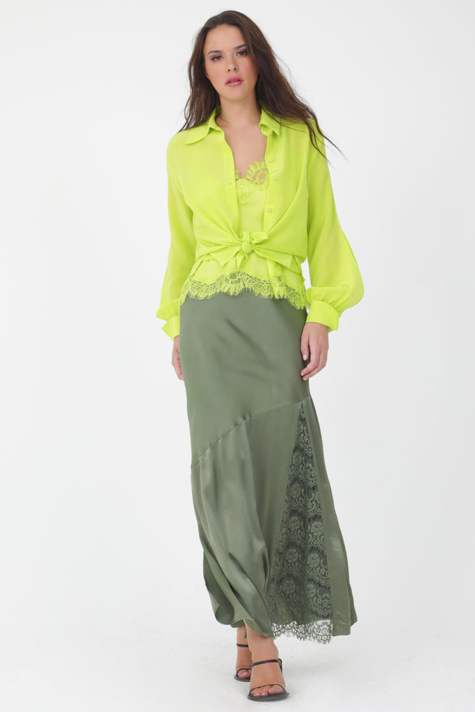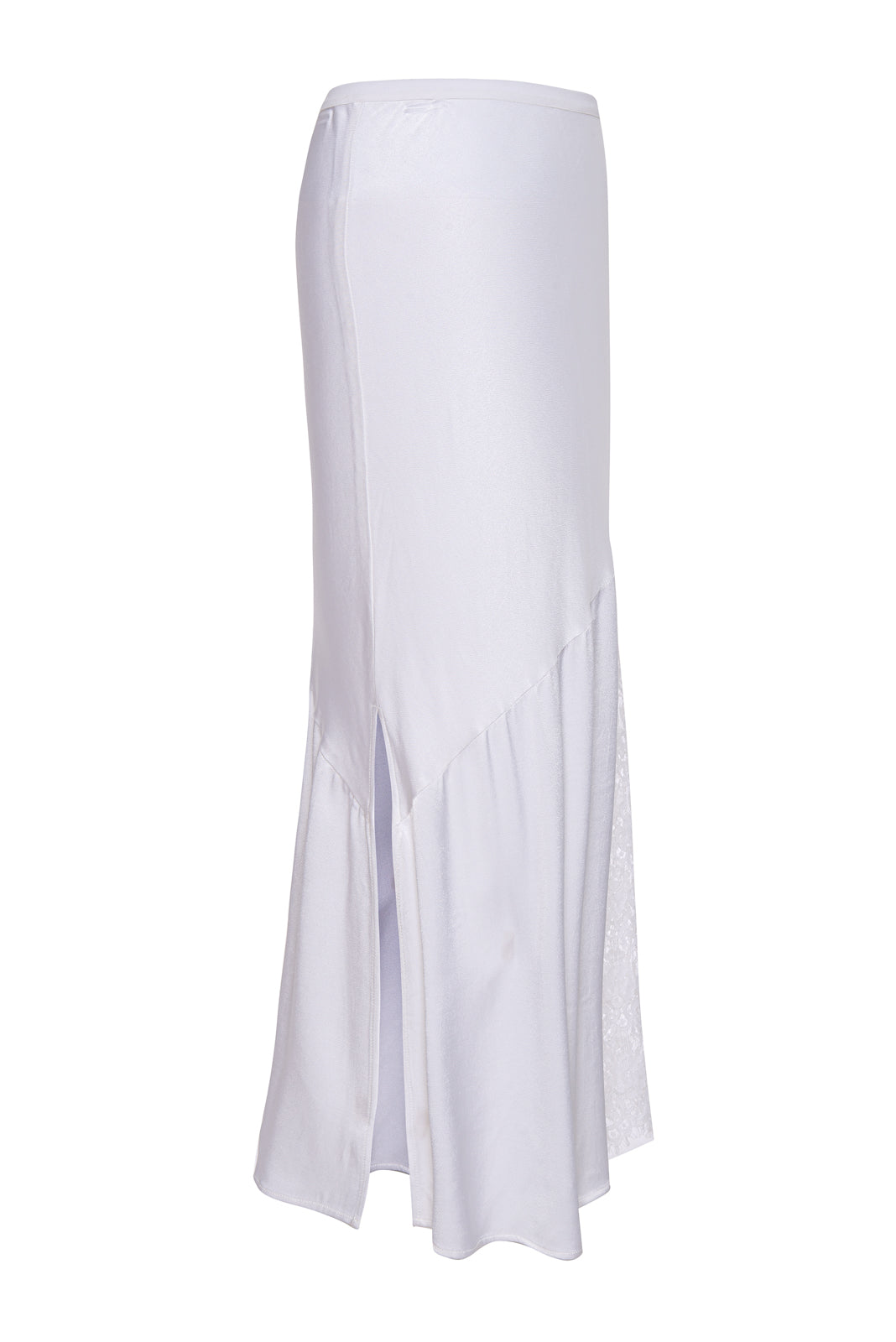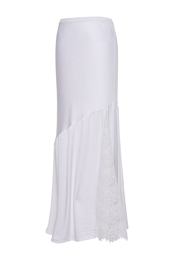 The Sienna Long Skirt features luxurious weighted viscose cut on the bias for a flattering silhouette, draping beautifully with every movement. Delicate hand-trimmed lace detailing adds elegance, while the lined construction and elastic waistband ensure comfort and ease throughout the day.