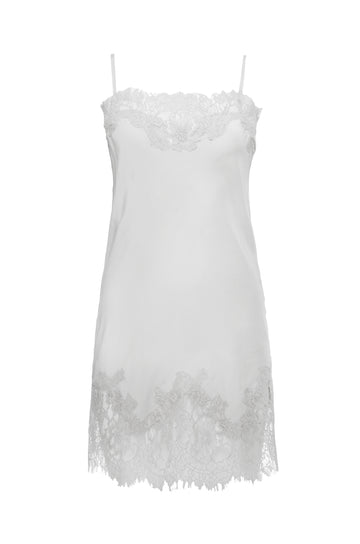 This Coco Lace Silk Tunic is crafted from pre-washed silk and designed to be worn as a mini dress or long camisole. Cut on bias for the perfect drape, it features our signature hand trimmed Coco lace. The straps are adjustable.