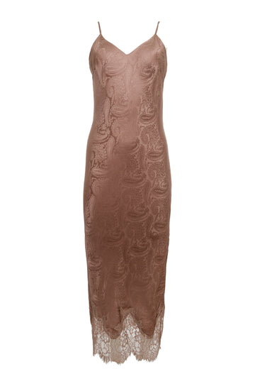 Emma Silk Jacquard Slip Dress Rose Taupe