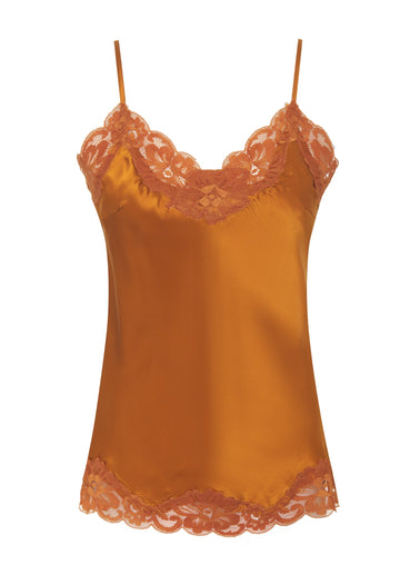 Wear it season after season, on its own, or layered. The floral patterned lace trim gives this silk