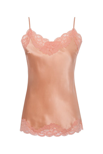 Wear it season after season, on its own, or layered. The floral patterned lace trim gives this silk