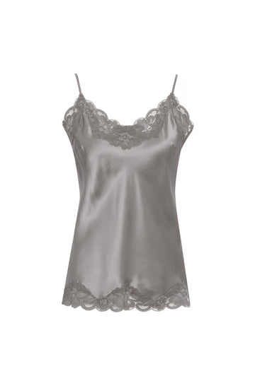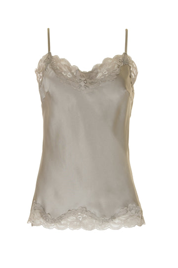 Wear it season after season, on its own, or layered. The floral patterned lace trim gives this silk