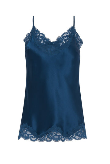 Floral Lace Silk Cami Tanzanite Blue