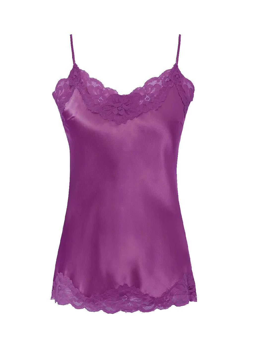 Wear it season after season, on its own, or layered. The floral patterned lace trim gives this silk