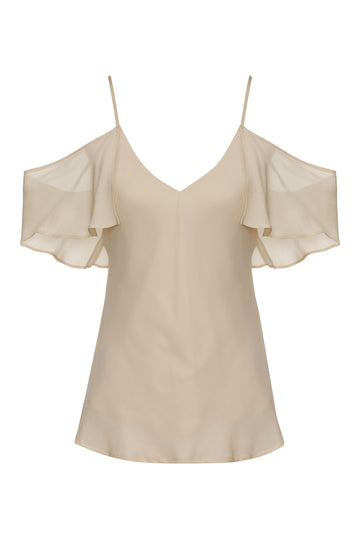 This London Sheer Cami features luxurious silk georgette, constructed on a bias cut. This top has adjustable straps and a lined interior, while the elegant off shoulder detail adds a subtle feminine touch.