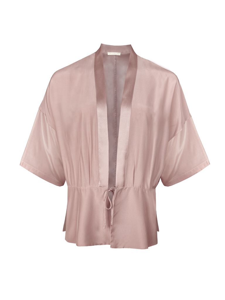 The Pleated Silk Robe is made from our signature pre-washed silk. The robe features front and back pleats, side slits, and is cut on bias for an elegant drape. With the attached ties, it can be worn closed or open.This kimono inspired robe is finished with a contrasting, shiny silk band along the neckline.