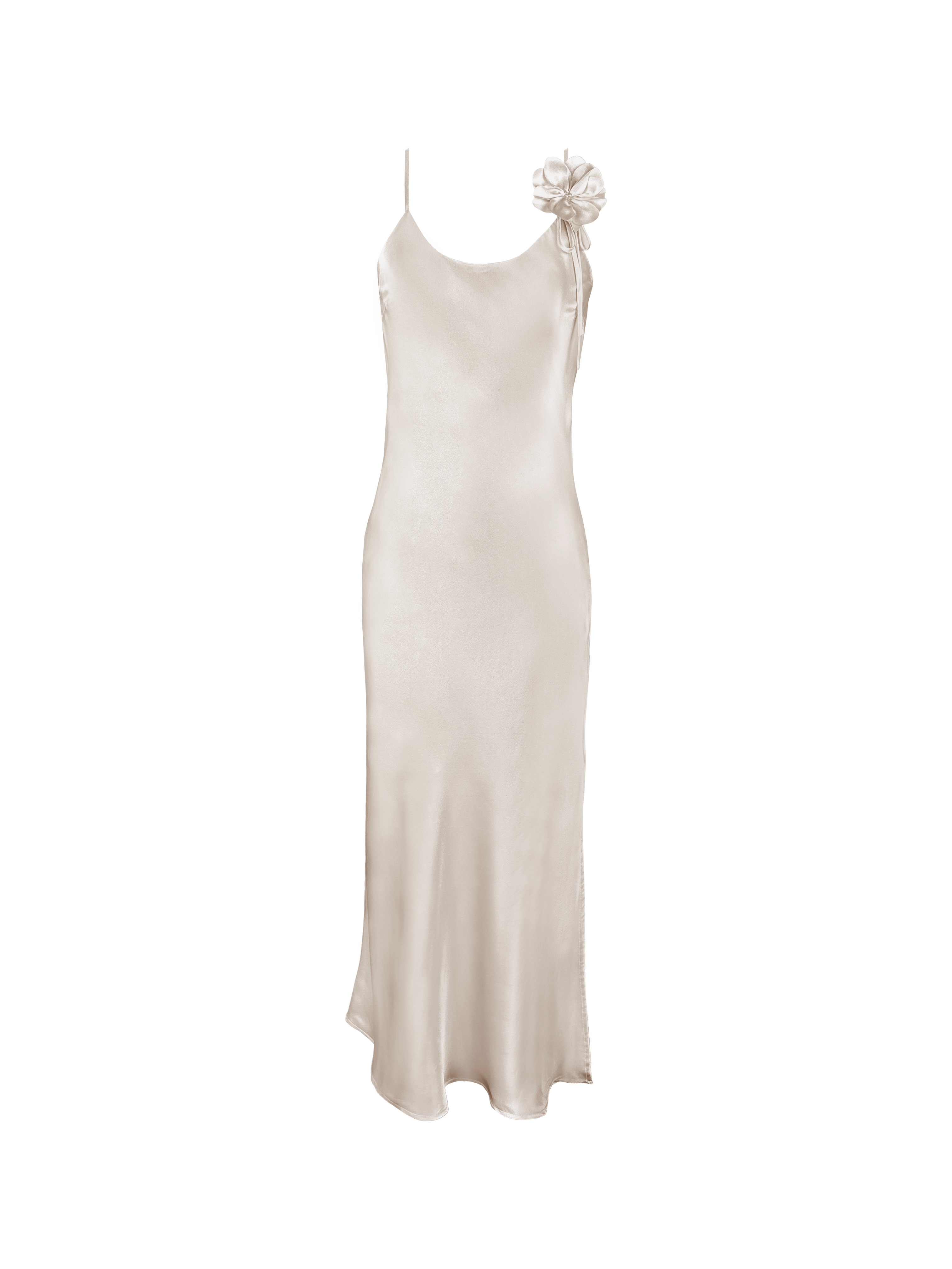 The Rosa Bias Long Dress is a must-have for your wardrobe. The maxi length and scoop neck line add a touch of elegance, while the adjustable straps provide a perfect, customized fit. The intricate flower trim adds a touch of romance and charm to this timeless piece.