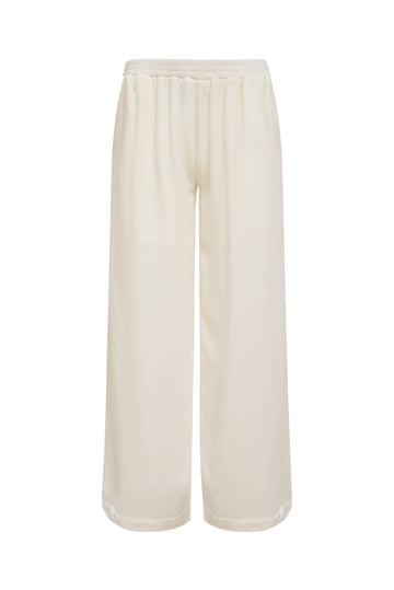 Luxurious blended silk velvet wide leg pants with pockets on the front and back. The waistband is elastic.